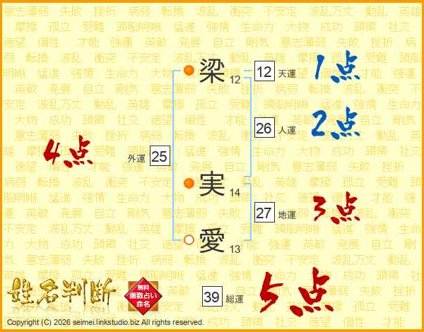 梁実愛さんの総運は39画の5点!