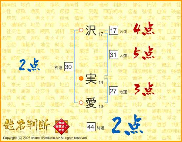 沢実愛さんの人運は31画の5点!