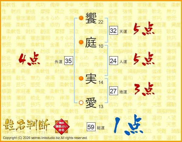 饗庭実愛さんの天運は32画の5点!