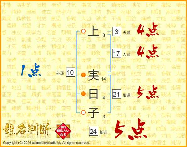 上(3画) 実(14画)日(4画)子(3画)