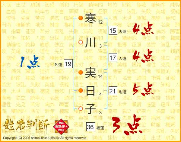 寒川実日子さんの外運は19画の1点!