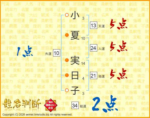 小夏実日子さんの天運は13画の5点!