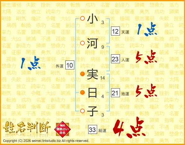 小河実日子さんの総運は33画の4点!