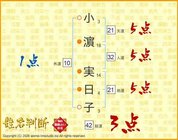 小濵実日子さんの人運は32画の5点!