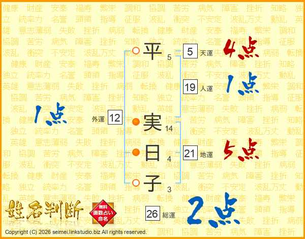 平実日子さんの総運は26画の2点!