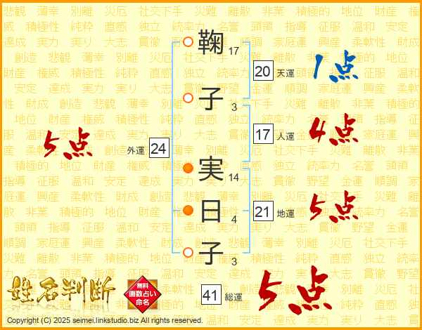 鞠(17画)子(3画) 実(14画)日(4画)子(3画)
