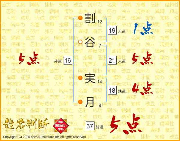 割谷実月さんの総運は37画の5点!