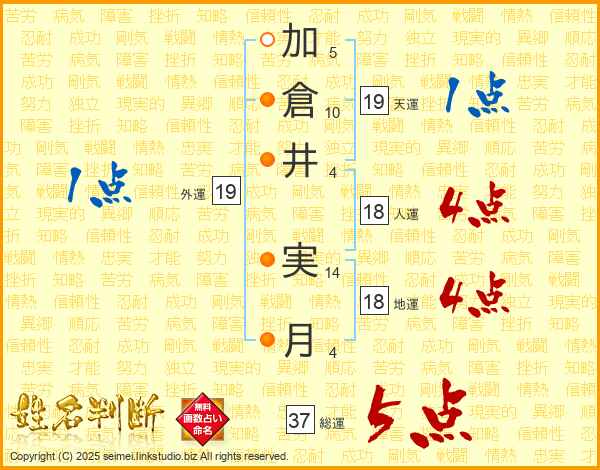 加(5画)倉(10画)井(4画) 実(14画)月(4画)