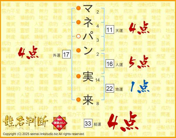 マネパン実来さんの総運は33画の4点!