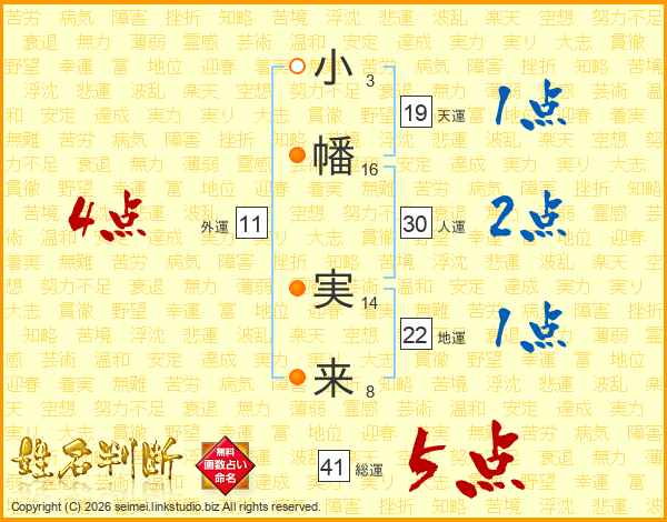 小幡実来さんの総運は41画の5点!
