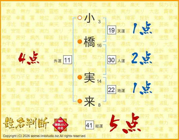 小橋実来さんの総運は41画の5点!