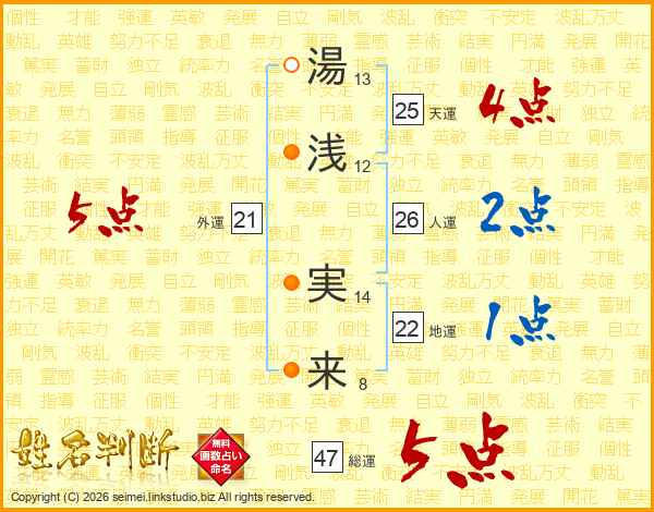 湯浅実来さんの総運は47画の5点!