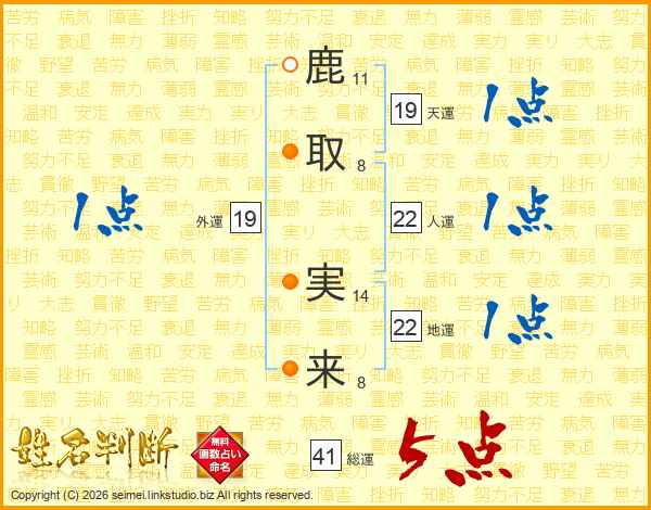 鹿取実来さんの天運は19画の1点!