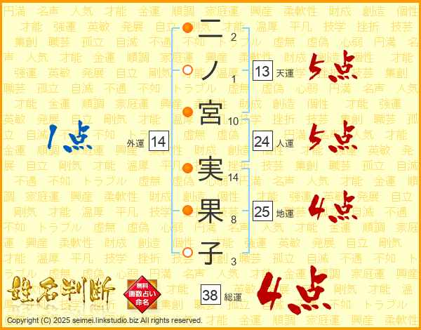 二ノ宮実果子さんの外運は14画の1点!