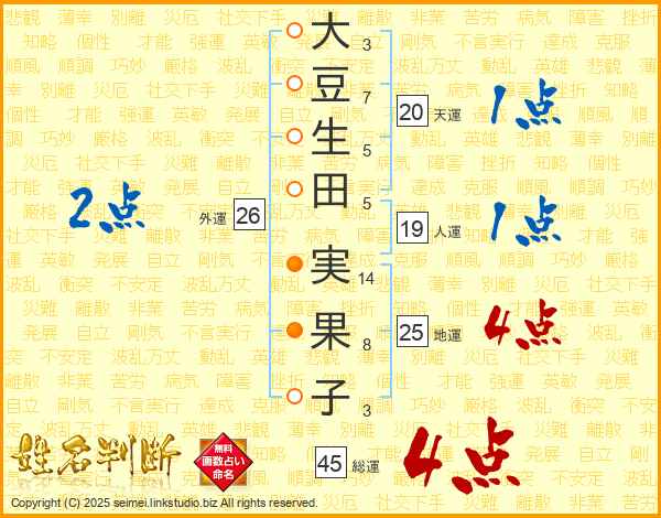 大豆生田実果子さんの総運は45画の4点!