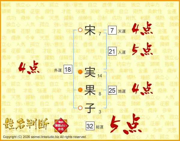 宋実果子さんの天運は7画の4点!