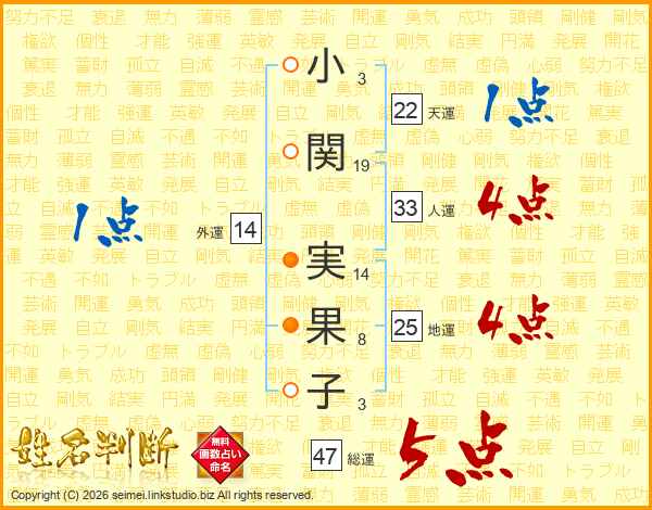 小関実果子さんの人運は33画の4点!