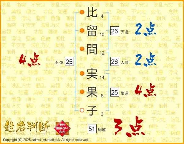 比留間実果子さんの天運は26画の2点!