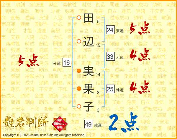 田辺実果子さんの天運は24画の5点!
