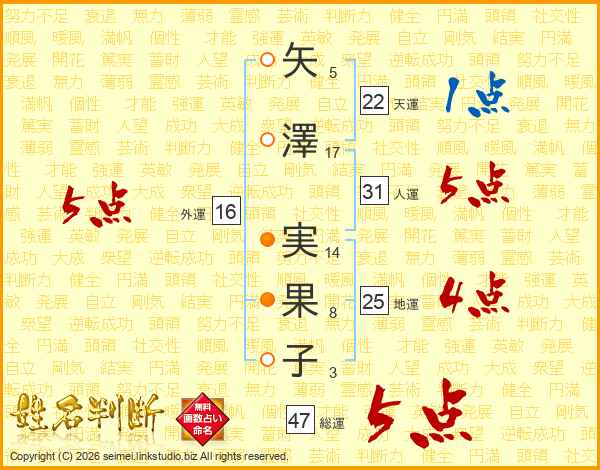 矢澤実果子さんの総運は47画の5点!