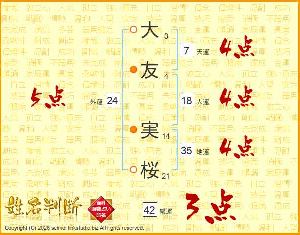 大(3画)友(4画) 実(14画)桜(21画)