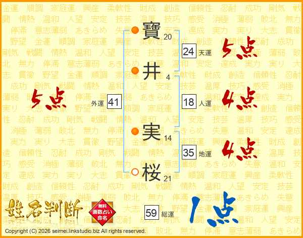 寶(20画)井(4画) 実(14画)桜(21画)