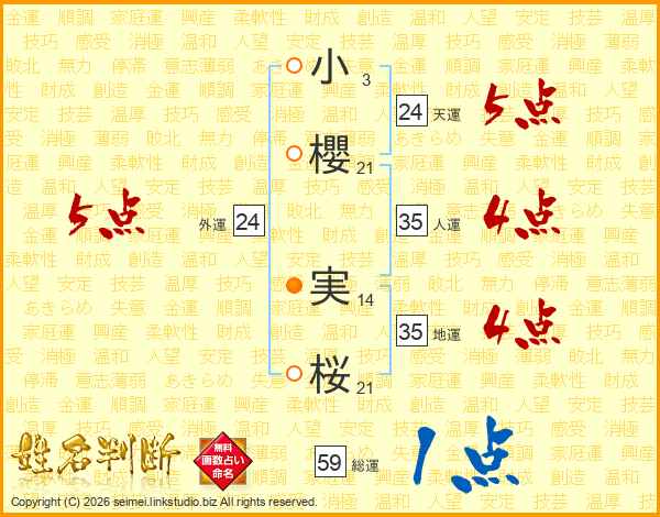 小櫻実桜さんの外運は24画の5点!
