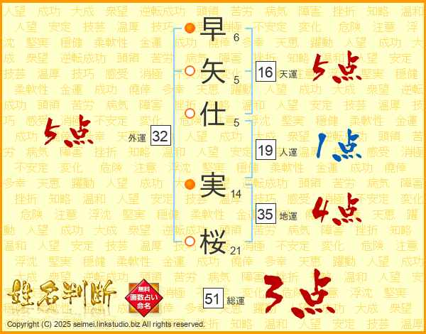 早矢仕実桜さんの総運は51画の3点!