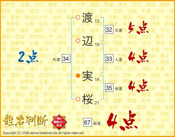 渡辺実桜さんの総運は67画の4点!