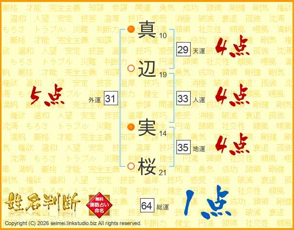 真辺実桜さんの総運は64画の1点!