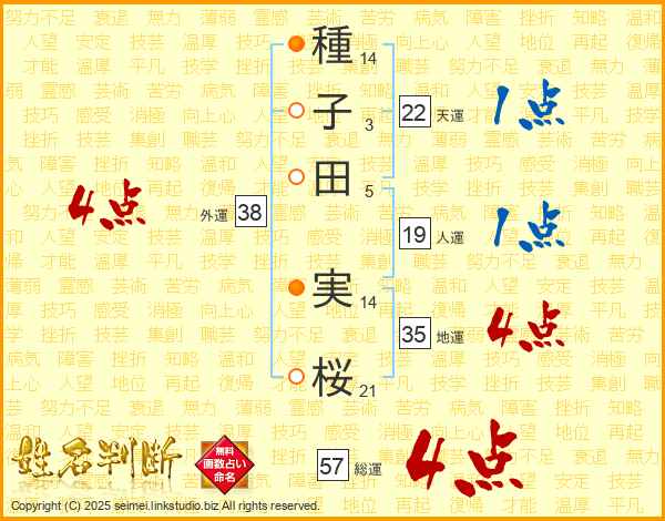 種(14画)子(3画)田(5画) 実(14画)桜(21画)