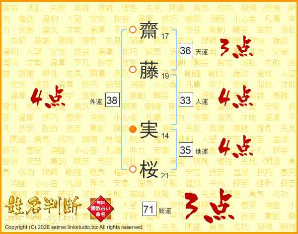 齋(17画)藤(19画) 実(14画)桜(21画)