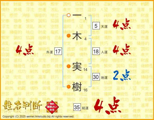 一(1画)木(4画) 実(14画)樹(16画)