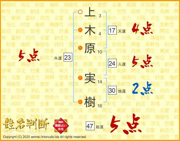 上木原実樹さんの総運は47画の5点!
