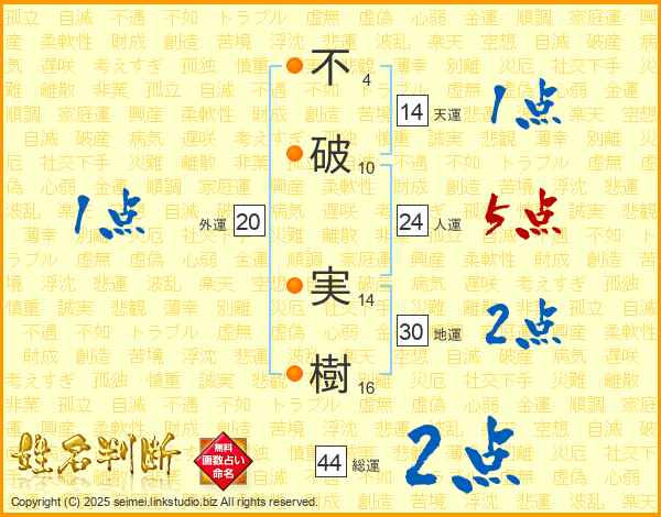 不破実樹さんの総運は44画の2点!