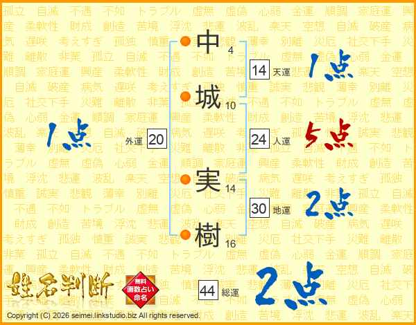 中城実樹さんの総運は44画の2点!