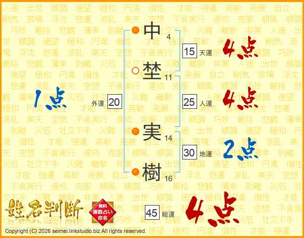 中(4画)埜(11画) 実(14画)樹(16画)