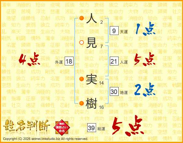 人見実樹さんの総運は39画の5点!