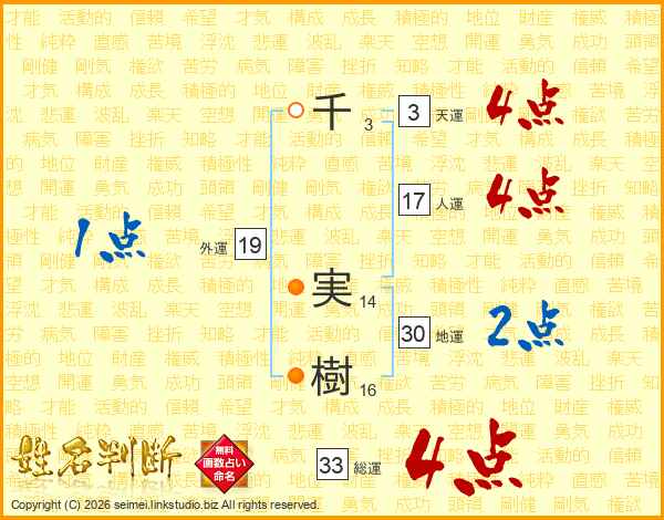 千実樹さんの総運は33画の4点!