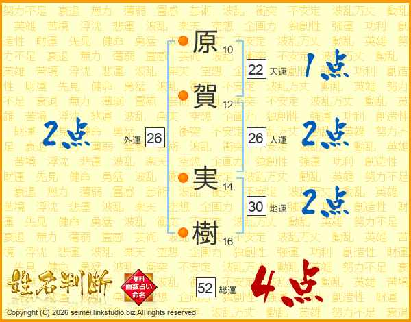 原賀実樹さんの総運は52画の4点!
