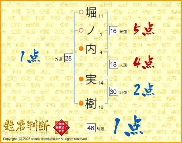 堀(11画)ノ(1画)内(4画) 実(14画)樹(16画)