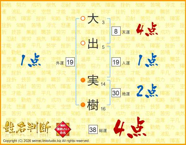 大出実樹さんの総運は38画の4点!