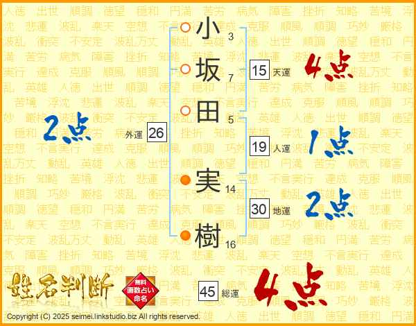 小坂田実樹さんの総運は45画の4点!