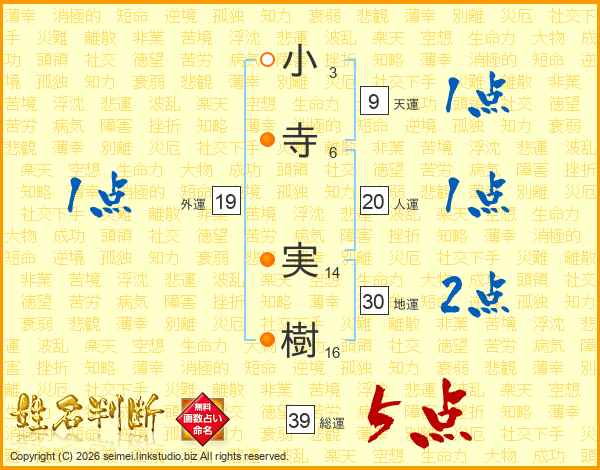 小寺実樹さんの総運は39画の5点!