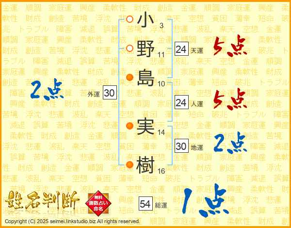 小(3画)野(11画)島(10画) 実(14画)樹(16画)