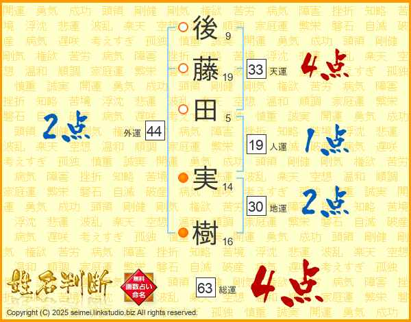 後(9画)藤(19画)田(5画) 実(14画)樹(16画)