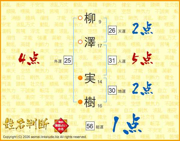 柳澤実樹さんの天運は26画の2点!