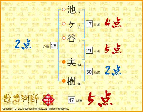 池ヶ谷実樹さんの総運は47画の5点!