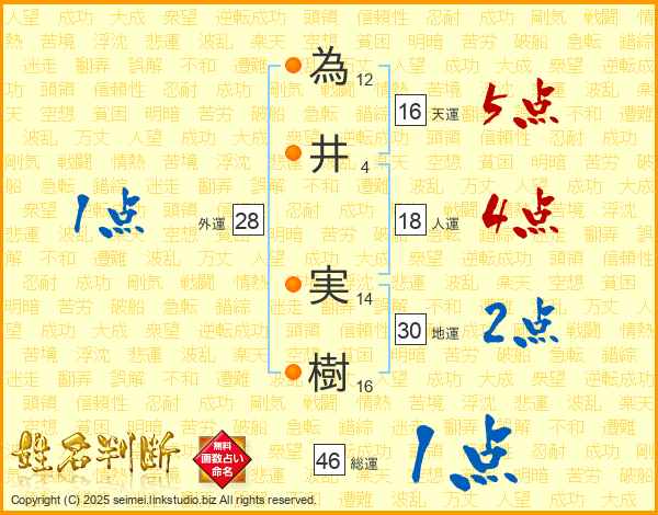 為(12画)井(4画) 実(14画)樹(16画)