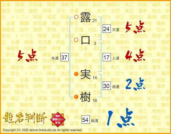 露口実樹さんの外運は37画の5点!
